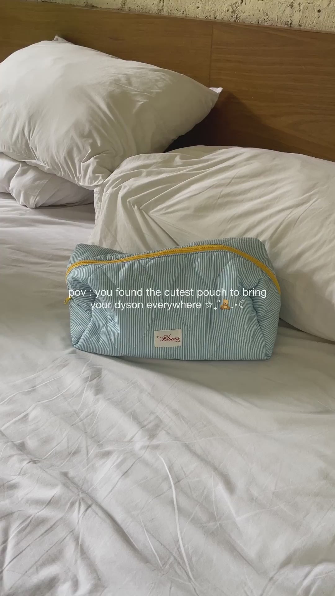 Meet the Essential Maxi Pouch, your lightweight and reliable for traveling with your Dyson and other hair tools. Inspired by the Breeze Summer, this pouch features our signature soft blue and yellow stripes, bringing a fresh, bright, and sunny energy to your travels.